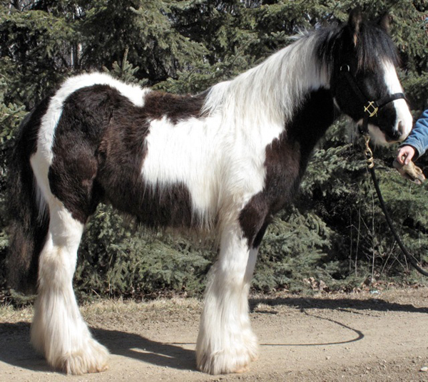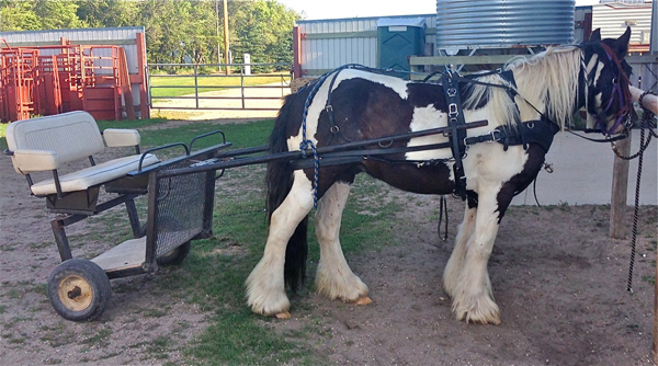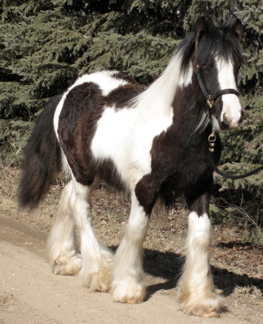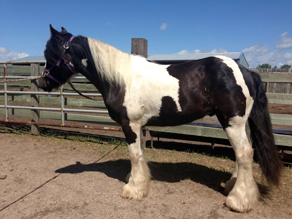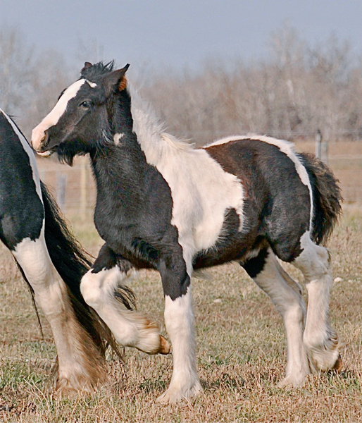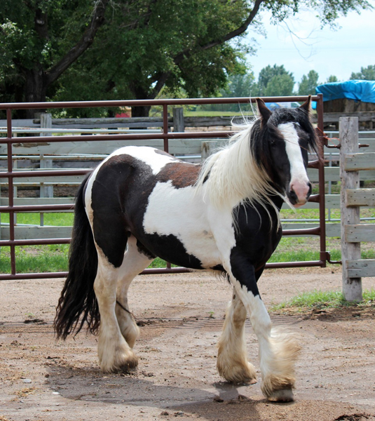 North Fork Bullet is a solid, sensible gelding with a long flowing gait and the ability to free jump 4'. On the English side of things Bullet will be trained for Dressage. We will also take advantage of his jumping talent and utilize him in both the hunter, and jumper rings. Versatility is something we love to build upon with these North Fork babies and Bullet will also be used for cattle work, as he shows a natural cowiness and desire to work cows. Bullet is also trained to drive single and will continue to grow and develop on the driving front. Everyone who meets this son of Layla and Tumbleweed falls in love with his sweet, gentle, honest nature and this combined with his natural athleticism makes him a great representative gelding for North Fork Gypsy Cobs.